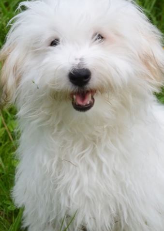 사진 말티즈처럼 보입니다. 말티즈와 비숑을 닮은 꼬똥은 털빠짐은 적지만 털이 길어 쉽게 빠지지 않습니다.